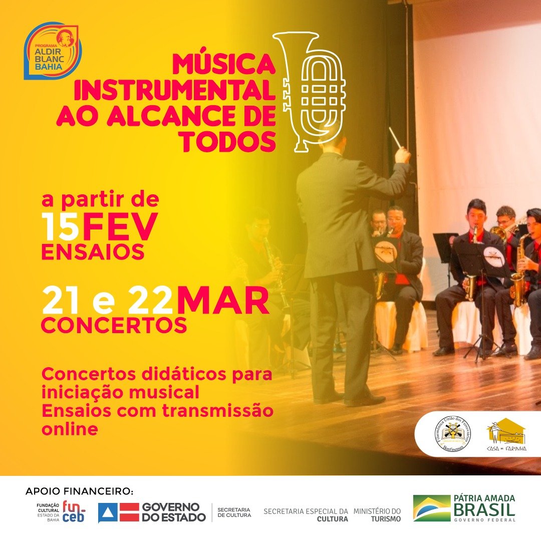 EDITAL DE CHAMADA PÚBLICA Nº 003/2020 – PRÊMIO DAS ARTES JORGE PORTUGAL PREMIAÇÃO ALDIR BLANC – O Projeto Serão desenvolvidas 6 (seis) oficinas virtuais de 20 horas / aula cada. Com os conteúdos de ensino em Regência, Trombone, Trompete, Saxofone, Clarinete, Organologia e pedagogia do instrumento. Voltados a adolescentes e jovens adultos, da faixa etária de 15 a 35 anos. As oficinas serão expositivas e interativas, buscando a construção dialética e dialógica do conhecimento. Será utilizado Plataforma digital para as reuniões. Com ficha de frequência. E avaliação continuada do aprendizado por meio de questionário semi-estruturado. Sendo utilizada a média de 70% como ponto de corte para recebimento do certificado. Prêmio das Artes Jorge Portugal – Música – Lei Aldir Blanc, valor R$ 40.000,00.