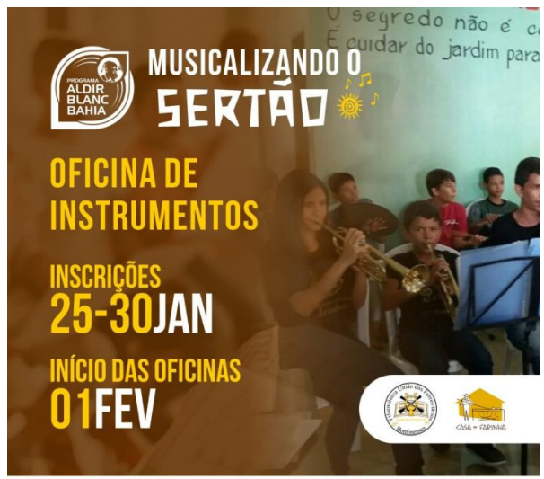 O projeto, realizado entre 2024 e 2025 com apoio do Ministério da Cultura, tem como objetivo implantar núcleos de formação musical nos dois maiores povoados de Senhor do Bonfim (BA). Com investimento de R$ 250.000,00, serão oferecidas oficinas de iniciação em música instrumental, promovendo aprendizado e acesso à arte para moradores de baixa renda dessas comunidades.